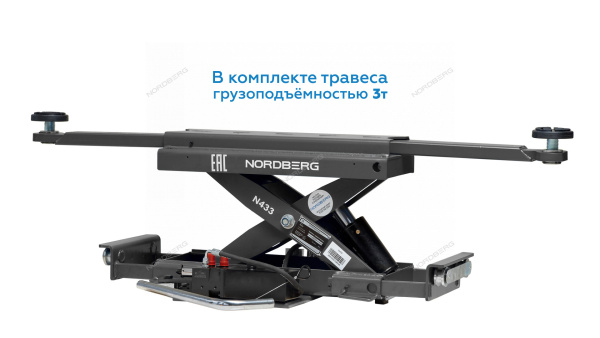 Подъемник 4-стоечный 5 т, c ручной траверсой 3 т N433, для сход-развала, электростопоры, 380 В, синий/серый 4450J_EG/EB(M) (длинна платформ 5790 мм, длинна с платформами 6780 мм, ширина трапов 616 мм), предназначен для системы сход-развал колес и слесарных работ оснащен местами для поворотных кругов и задними сдвижными платформами, оборудован гидравлической траверсой грузоподъемностью 3 тонны, синхронизация тросовая по периметру, каждая стойка имеет блокировку по безопасности. ...