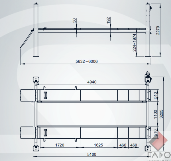 Автомобильный длиннобазный подъемник на 5 тонн GR5000-4-3D GARO (длина платформ 5192 мм, с трапами 6130 мм, расстояние между колоннами 2910 мм), Предназначен для слесарных работ и для операции по развал схождению с технологией 3D. Подъемник оборудован траверсой г/п 2.5т. и комплектуется задними сдвижными пластинами и местами для установки передних поворотных кругов. Актуален для коммерческого транспорта, типа Mercedes Sprinter, Fiat Ducato, Peugeot Boxer, Citroen Jumper ...