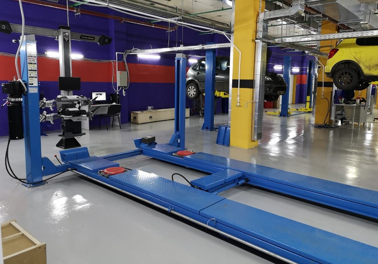 Данный четырехстоечный подъемник обладает увеличенным сроком службы за счет использования хонингованных гидроцилиндров.