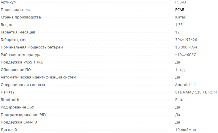 Технические характеристики FCAR F9S-D