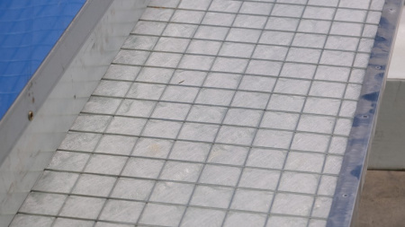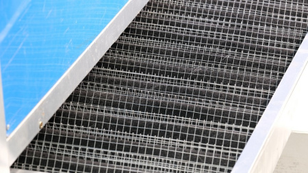 Перфорированная панель из оцинкованной стали на блоке воздуховода и удаления воздуха.