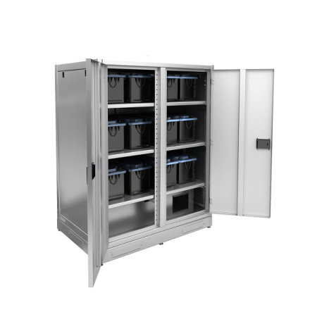 Батарейный шкаф КРОН-ШМА-02.ХХХХ предназначен для размещения или хранения аккумуляторов различного типа и исполнения, а также для их подключения к источникам бесперебойного питания (ИБП), устанавливаемых внутри изделия.