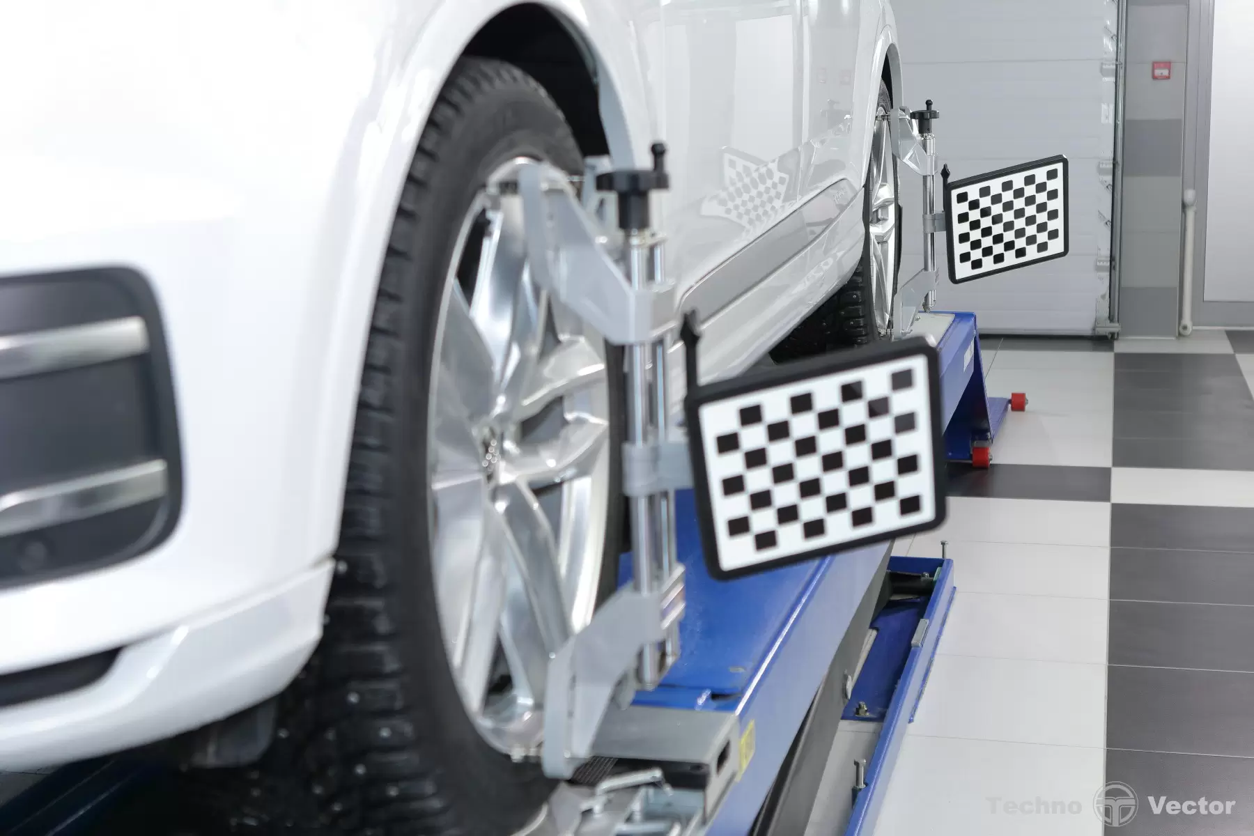 • Система машинного зрения автоматически распознает мишени, установленные на колеса автомобиля, а затем с высокой точностью вычисляет их геометрическое положение в пространстве.